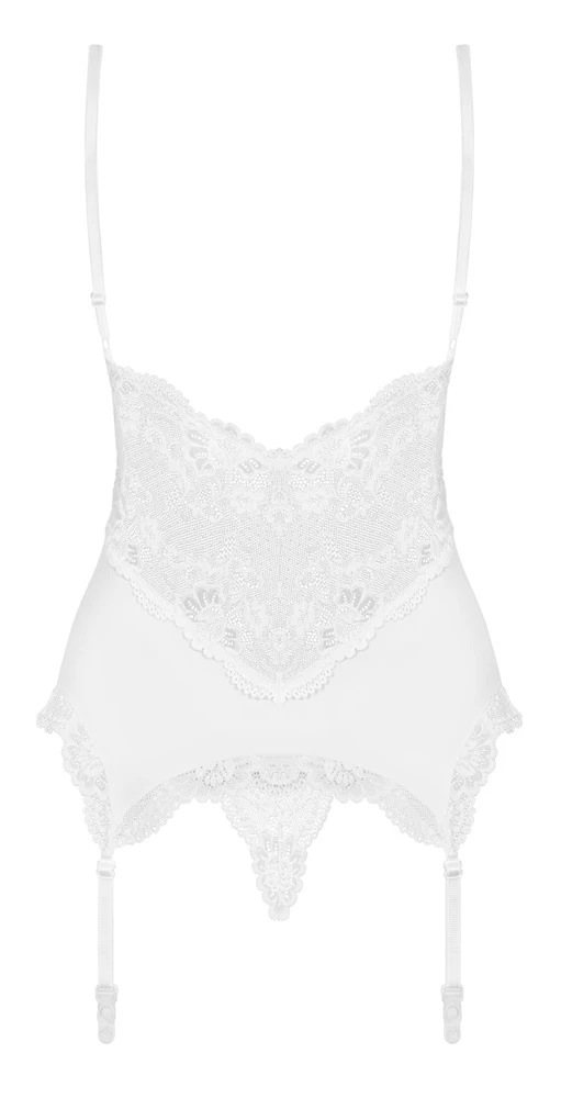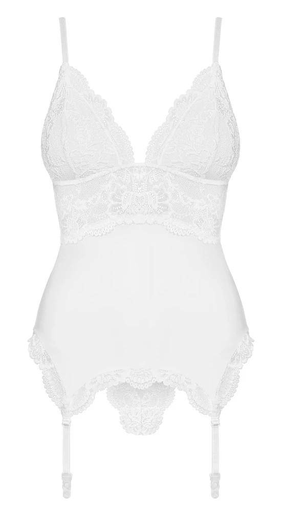 • Schnitt & Material: Strapshemd mit Spitzeneinsätzen. Träger und Strapse verstellbar. Inklusive String. Weiß. 85% Polyamid, 15% Elasthan. Ohne Strümpfe.
