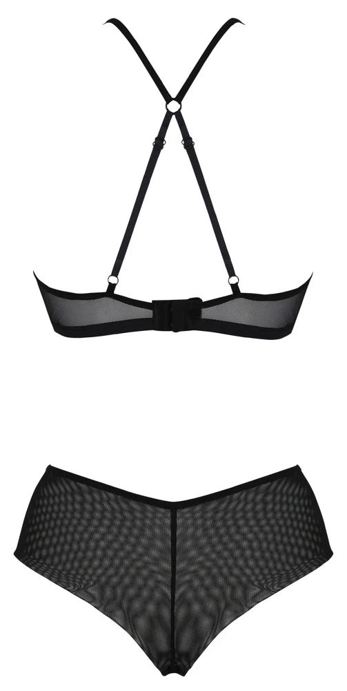 Dieses semi-transparente Set aus Powernet und Spitze eignet sich nicht nur für einen verführerischen Auftritt, es ist auch wunderbar sinnlich und bequem im Alltag. Der BH punktet nicht nur mit seinen Spitzen-Cups, sondern auch mit seiner raffinierten Trägerlösung, indem sich diese auf dem Rücken in einem Ring kreuzen. Das bildschöne Set besteht aus 95% recycelten und biologisch abbaubaren Materialien, die durch erneuerbare Technologien hergestellt werden. Das ist gut für dich und für unsere Umwelt – Öko kann so sexy sein!