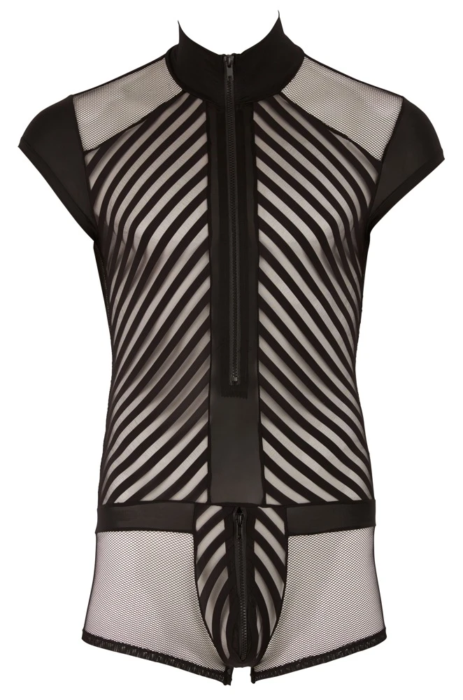 Dieser Kurzbody mit kurzem Arm setzt Dich raffiniert in Szene! Der Materialmix aus zwei Netzarten und die angesagte Streifenoptik gewährt aufregende Einblicke. Reißverschluss vorne und im Beutel unterlegt.