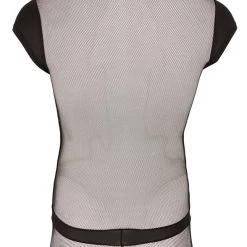 • Schnitt & Material: Körperbetonter Kurzoverall mit breitem Reißverschluss vorne bis zur Taille und unterlegtem Reißverschluss am Beutel. Materialkombination aus drei verschiedenen schwarzen Stoffen (u.a. Netz). 90% Polyamid, 10% Elasthan.