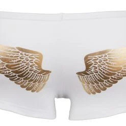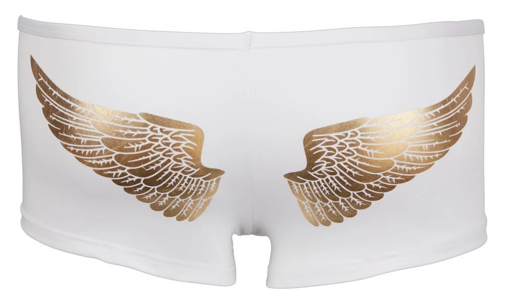 • Schnitt & Material: Mikrofaser-Pants mit goldenen Engelsflügeln hinten. Zip am Beutel. 92% Polyester, 8% Elasthan.