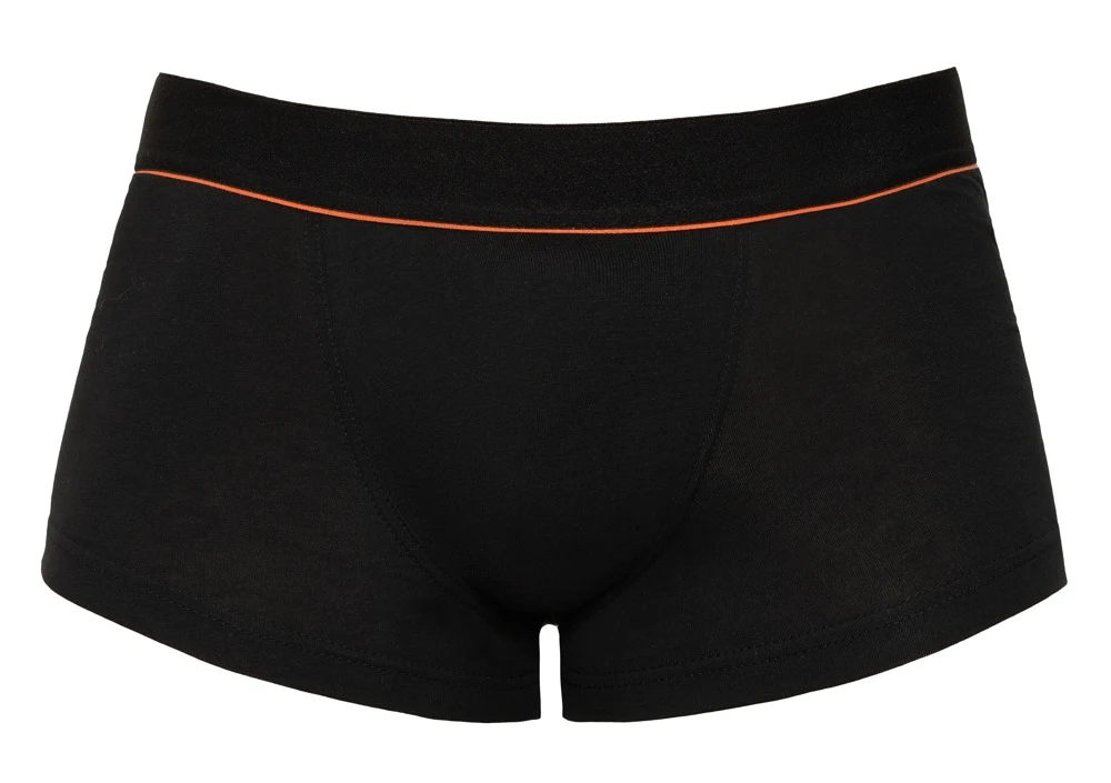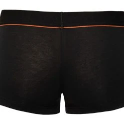 • Schnitt & Material: Schwarze, eng geschnittene Pants mit rotem Streifen unter dem weichen Webgummibund. Beutel doppellagig. 95% Baumwolle (Organic Cotton), 5% Elasthan.
