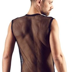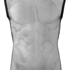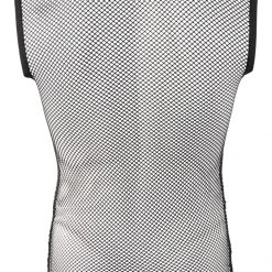 • Schnitt & Material: Elastisches schwarzes Shirt aus grobem Netz. Ärmellos. Die Säume sind eingefasst. 100% Polyamid.