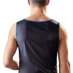âą Lieferumfang: 1 x Shirt im schwarzen Mattlook mit royalblauen Paspelierungen.