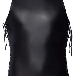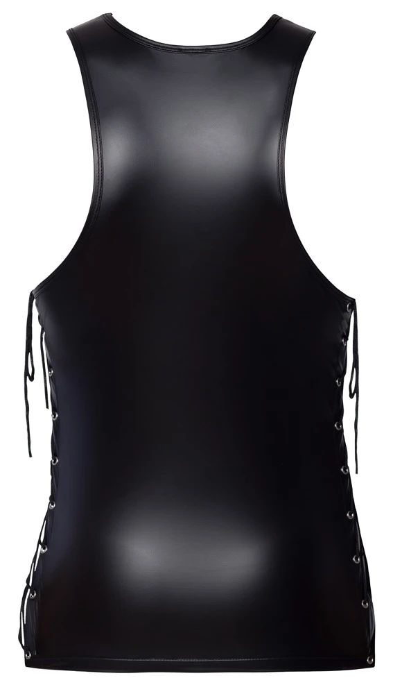 Dieses ärmellose Slim Fit Shirt schmiegt sich mit seinem leichten Stretchmaterial aufregend an und betont mit seinem matten Finish deinen muskulösen Oberkörper ganz hervorragend. In der Seitenansicht überrascht das Shirt mit aufregenden Schnürungen, die du auf deine Passform variabel schnüren kannst. Ein Shirt für Männer, die anmachen und angemacht werden wollen!