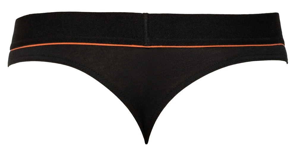 âą Schnitt & Material: Schwarzer String im Rio-Styling mit rotem Streifen unter dem weichen Webgummibund. Beutel doppellagig. 95% Baumwolle (Organic Cotton), 5% Elasthan.