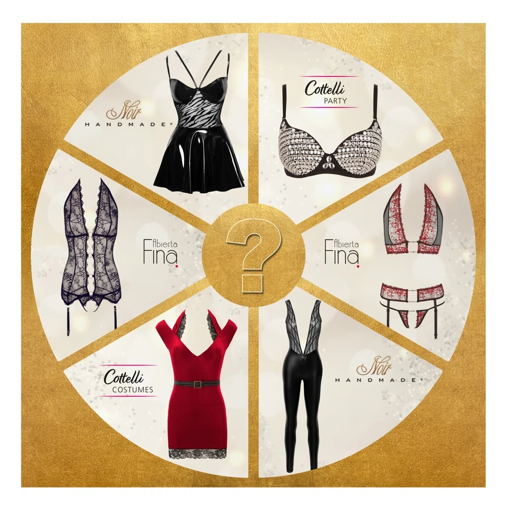 Gönn dir ein hochwertiges Kleidungsstück aus den Kollektionen unserer High Class Label. Mit dieser Überraschung erhältst du ganz besonders gefragte Lingerie oder Fashion. Die Überraschung wird immer wieder neu und zufällig ausgewählt; es kann sich z. B. um ein Dessous oder ein Set handeln – auch ein Partykleid oder Fashion aus Lack könnte dabei sein. Lass dich einfach mal überraschen!