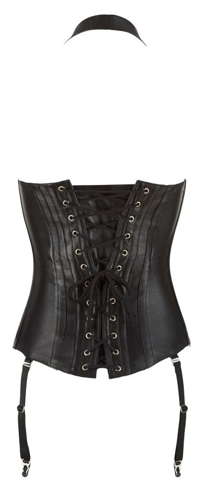 • Schnitt & Material: Corsage aus Lammnappa-Leder mit Steppung im Biker-Style und Taillenband. In der Front mit Reißverschluss und Schnallen, hinten mit unterlegter Schnürung. Träger verstellbar, Strapse verstell- und abnehmbar. Schwarz. Ohne String und Strümpfe. Leder (Lamm, chromfrei gegerbt), Innenfutter 100% Polyester.